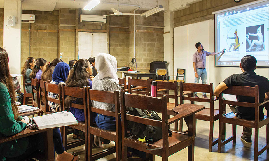 Post-Foundation courses cover a diverse range of subjects and movements, wherein faculty choose to focus on a particular issue, timeframe, or creative practice., The emphasis in these courses is on analytical skills, vocabulary, and context. Following on the broad survey courses of the Foundation Year, students are now invited to concentrate on and analyse individual works in their own particular historical, social, aesthetic, religious, and political contexts. The Post Foundation curriculum also aims to initiate debate and an understanding of the place of creative practice in society, particularly Pakistani society. By developing courses on the political and social resonance of art, design, and architectural institutions, and on creative display and creative members of society, it is intended that students be able to connect their own practices to their social contexts.